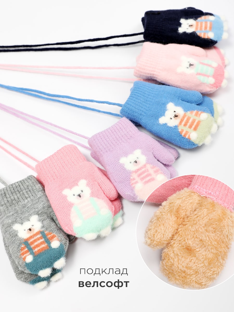 Тёплые, двойные варежки на шнурке, с меховым начёсом. Варежки отлично сохраняют тепло и защищают руки от мороза в холодное время года.