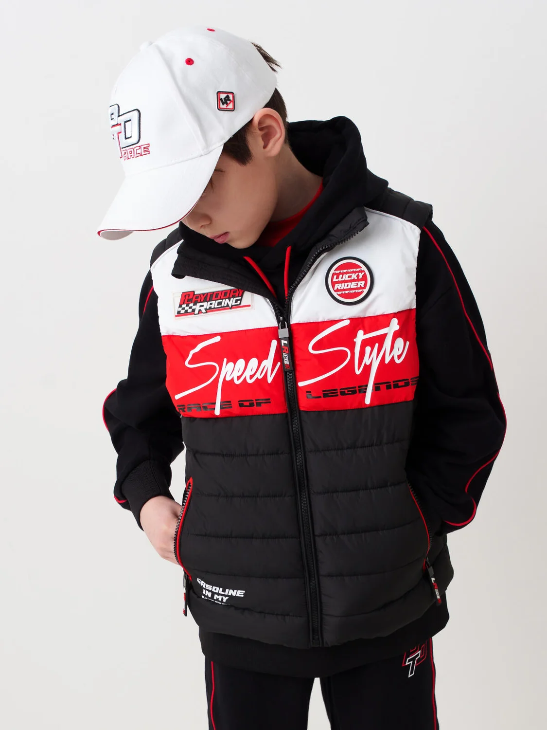 Бейсболка для мальчика подростка. Модель выполнена в спортивном стиле с графическим принтом "PT RACE" и логотипом команды. Бейсболка выполнена из хлопкового твила. 4 отверстия для проветривания. Боковая панель украшена силиконовым шевроном. Застёжка сзади металлическая, регулируемая. Изделие отлично дополнит летний образ юного поклонника автоспорта.