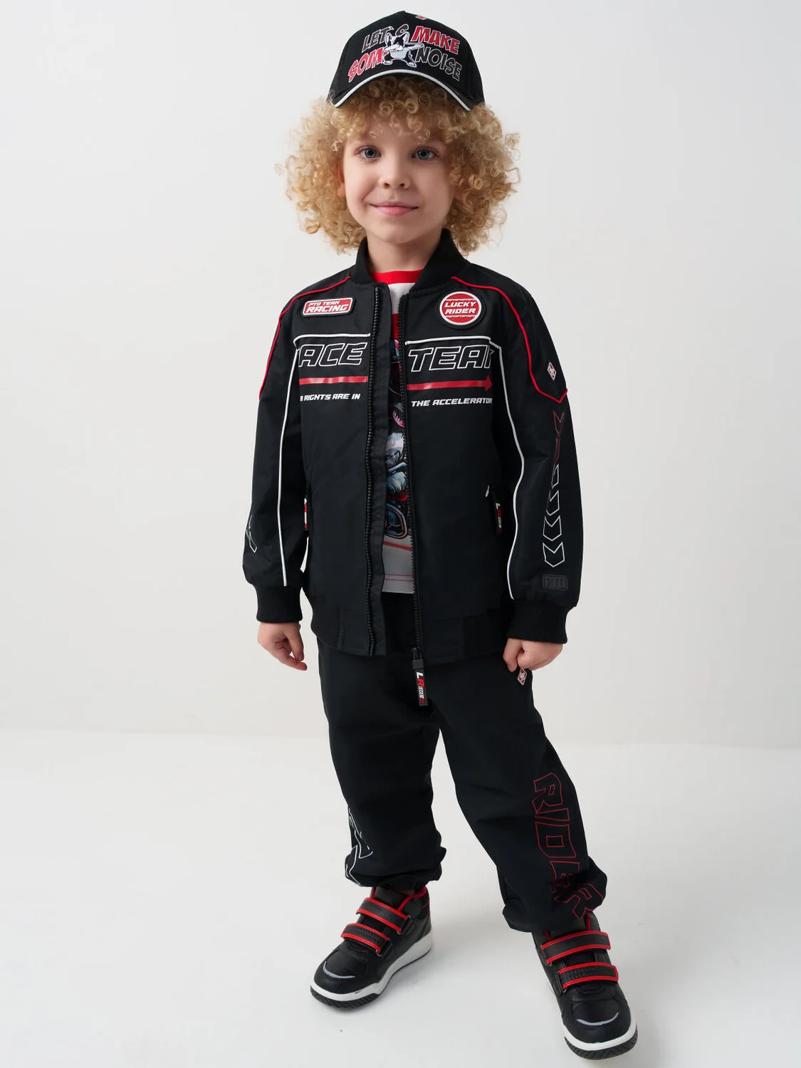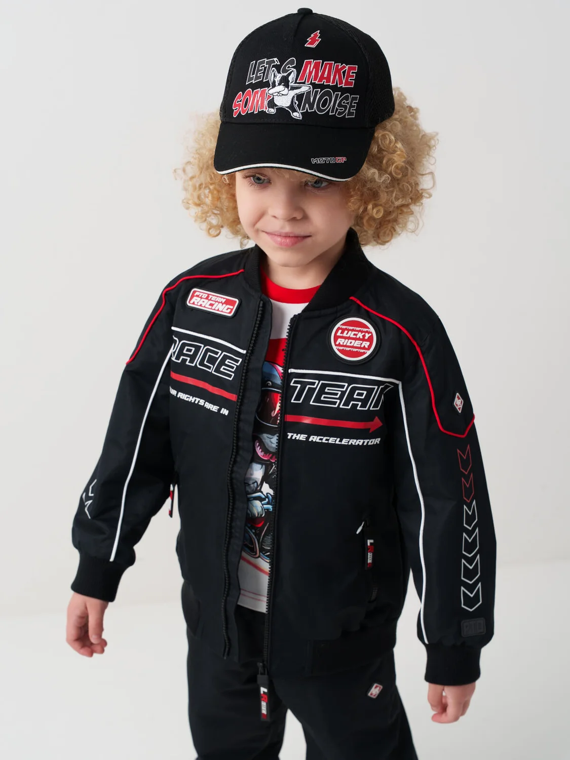 Бейсболка детская для мальчика. Модель выполнена из комбинации хлопкового текстиля и сетки для комфорта в жаркую погоду. Изогнутый козырек, декоративные принты. Застежка на кнопки с регулировкой.