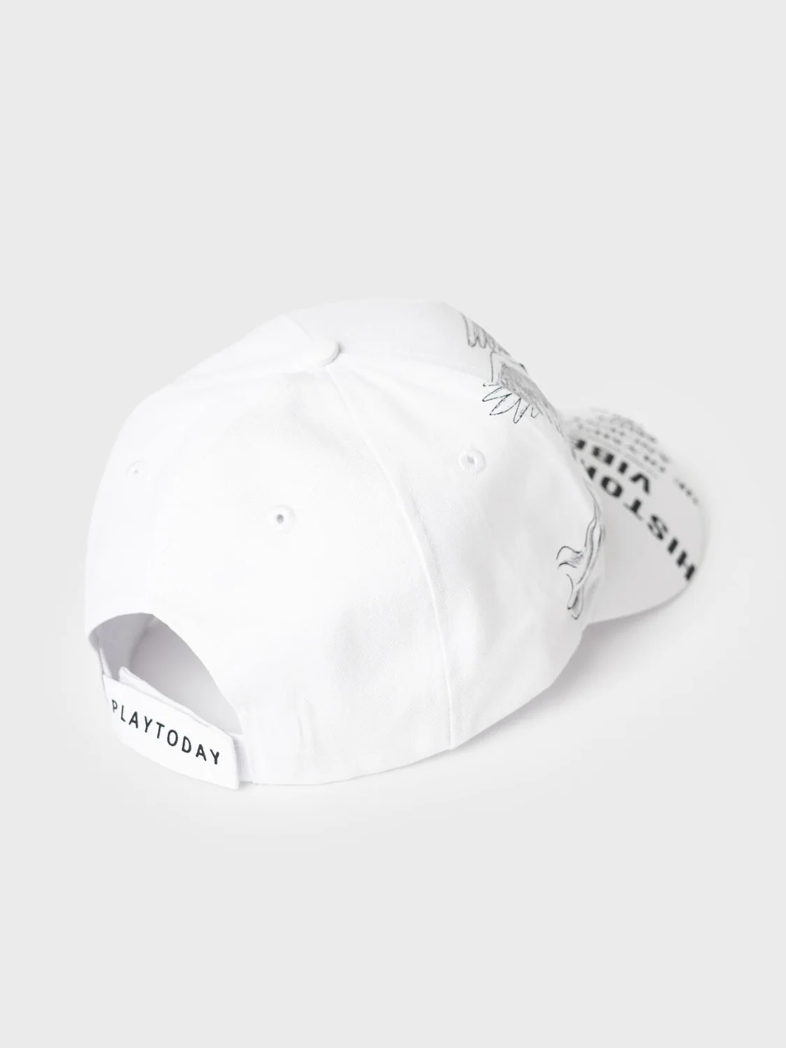 Бейсболка для девочки подростка. Классическая форма с изогнутым козырьком и удобной застёжкой на липучке сзади. Спереди — силиконовая нашивка, а на боковой части и козырьке — крупные графические принты.