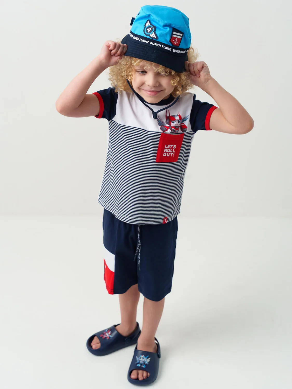 Детская хлопковая панама для мальчика. Для удобства предусмотрены завязки из хлопкового шнура. Панама оформлена декоративной строчкой на полях и имеет вентиляционные люверсы по бокам.