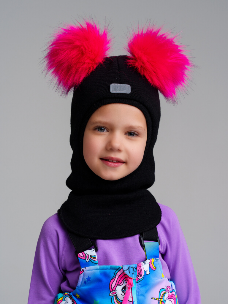 Шапка трикотажная для девочек черный,фуксия 32322214