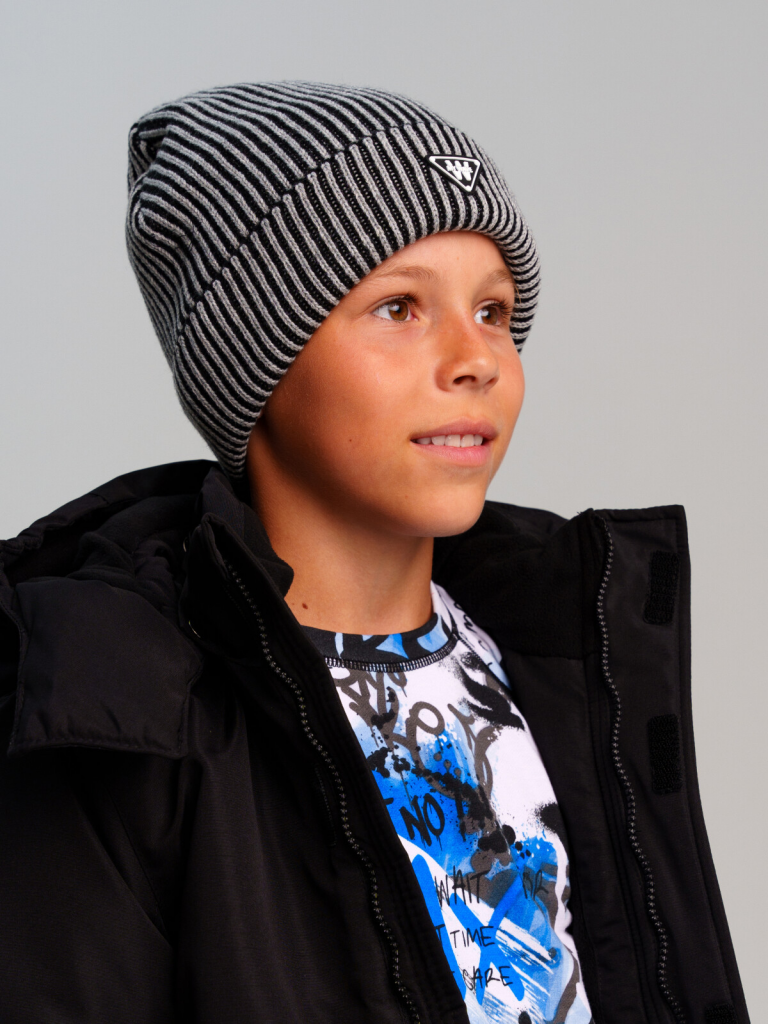 Вязаная шапка для мальчика подростка. Модная утепленная шапка с подкладкой из флиса для прогулок в холодное время года ( осень, зима). Модель из капсульной коллекции MY WAVE (Май ВЭЙВ). Соберите полный образ в едином стиле! 100% акрил
