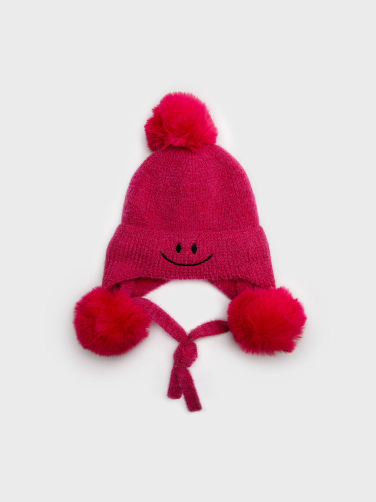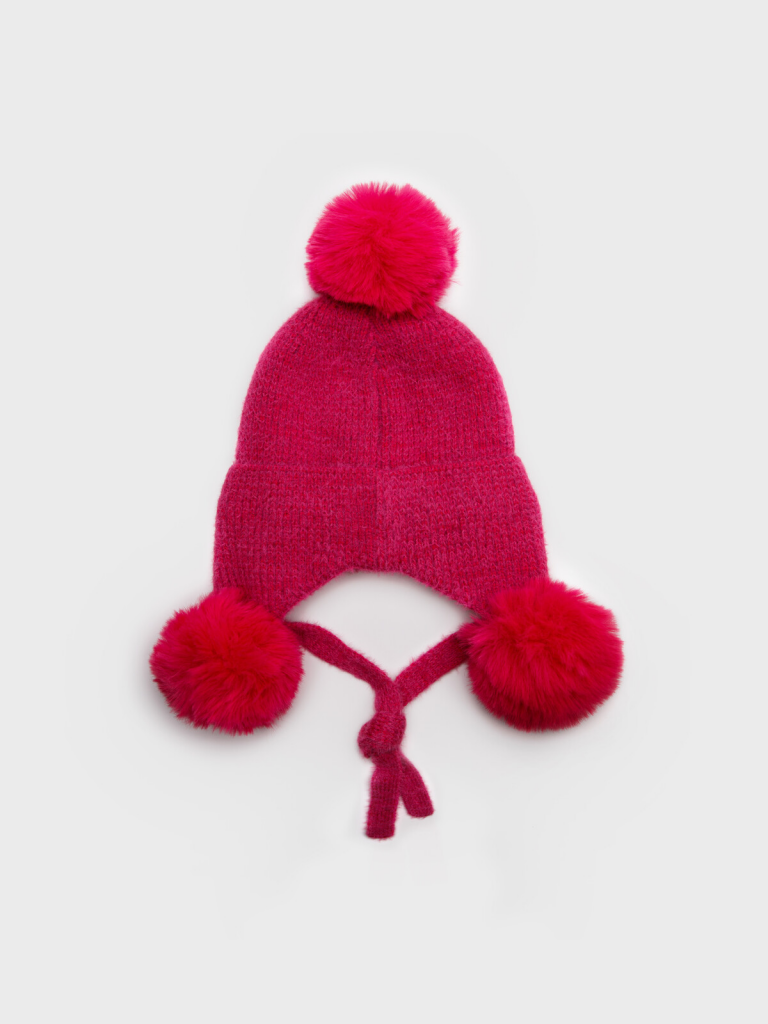 Вязаная детская шапка для девочки. Модная шапка отлично подойдет на холодное время года ( осень, зима). Завязки. Помпоны. Модель из капсульной коллекции CATCH ME. Соберите полный образ в едином стиле! 50% вискоза, 50% нейлон