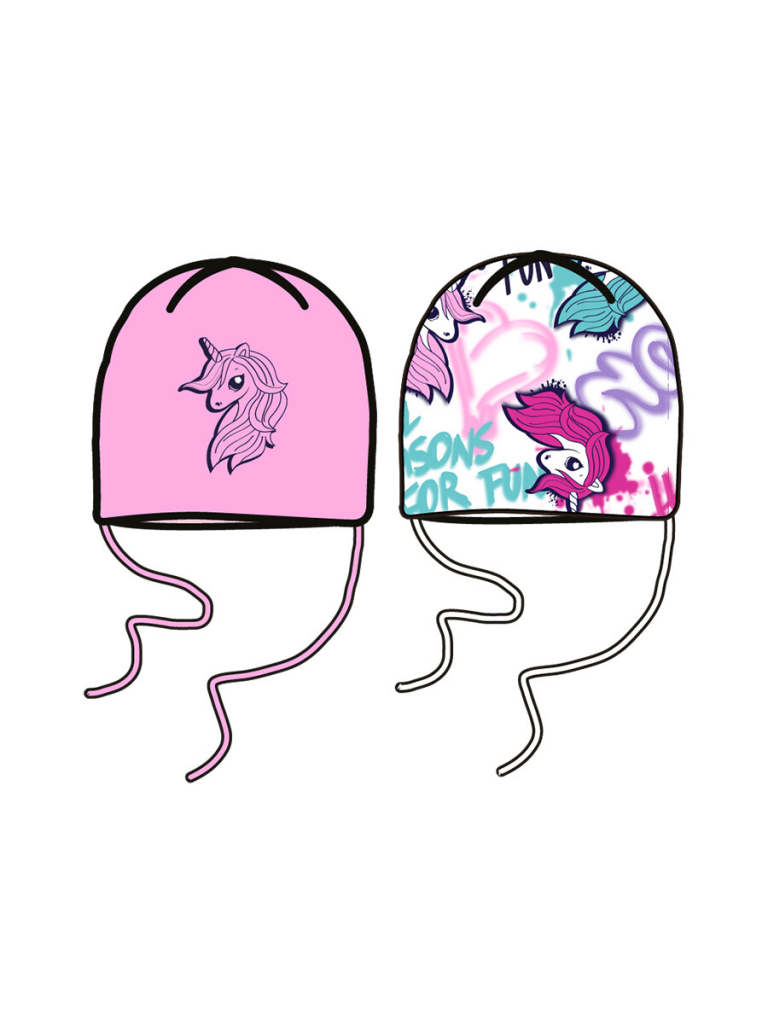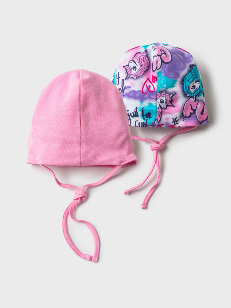 Набор детских шапок для девочки. Шапка трикотажная, 2 шт. в комплекте. Модель из натурального хлопкового двойного трикотажа. Завязки.