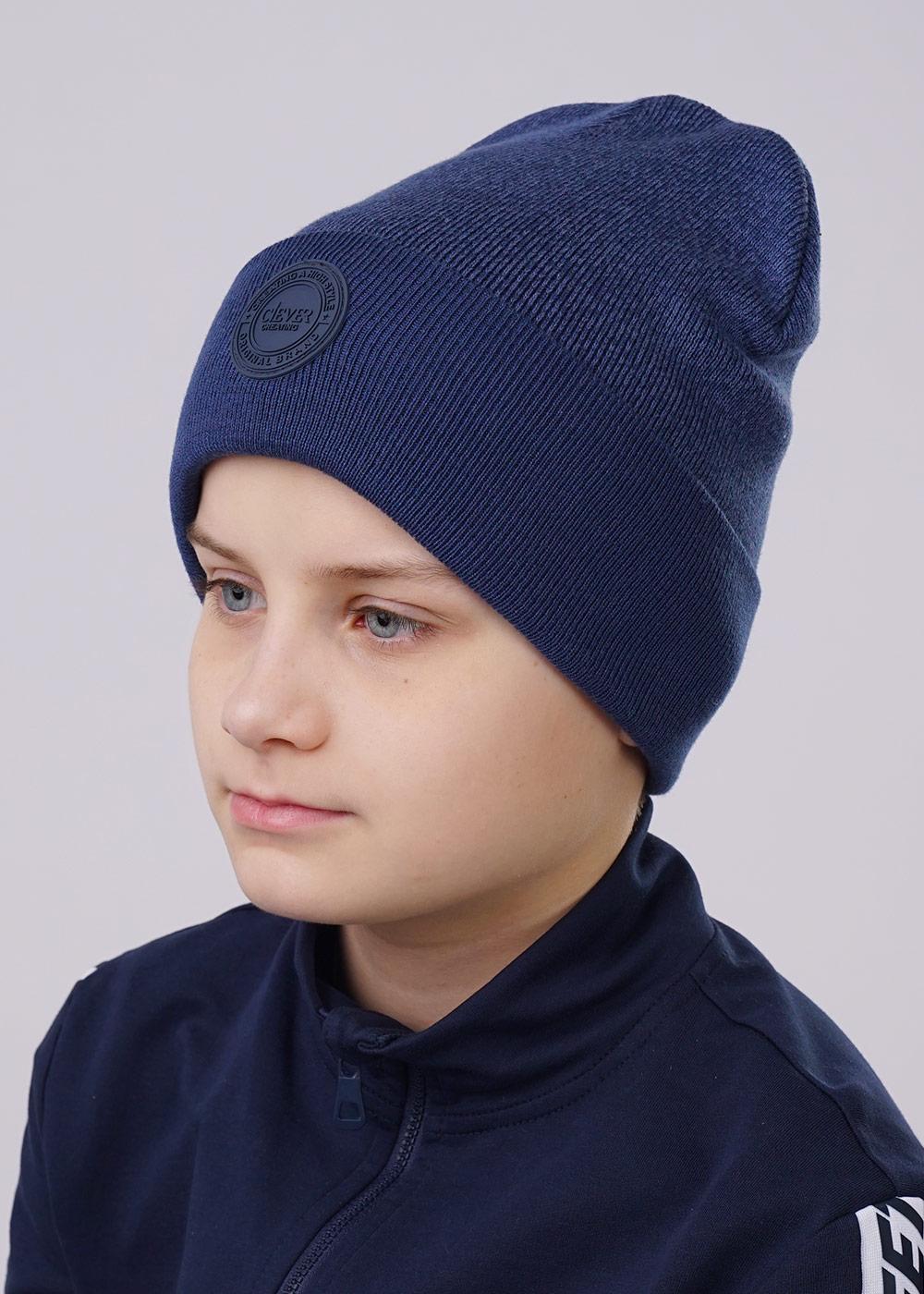 Стильная детская шапка с отворотом, декорирована имиджевой нашивкой в центральной части. Идеально подойдёт для осени- весны.