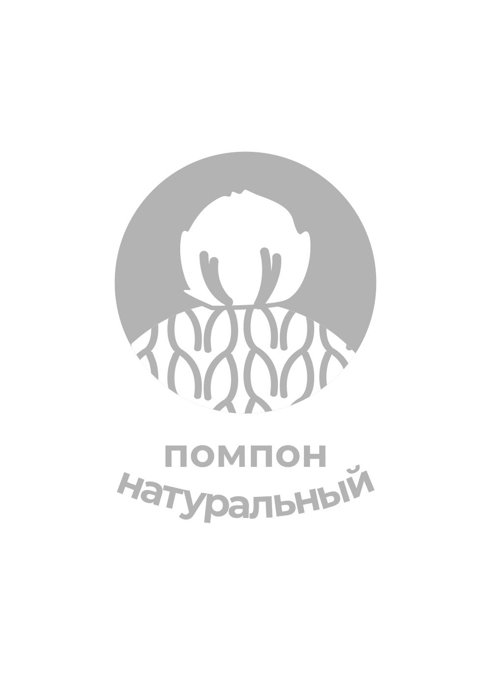 Шапка с объемным ластичным отворотом, выполнена фактурным переплетением "косы" из фасонной пряжи и декорирована помпоном из натурального меха и металлическим логотипом-нашивкой. Модель на флисовом подкладе.