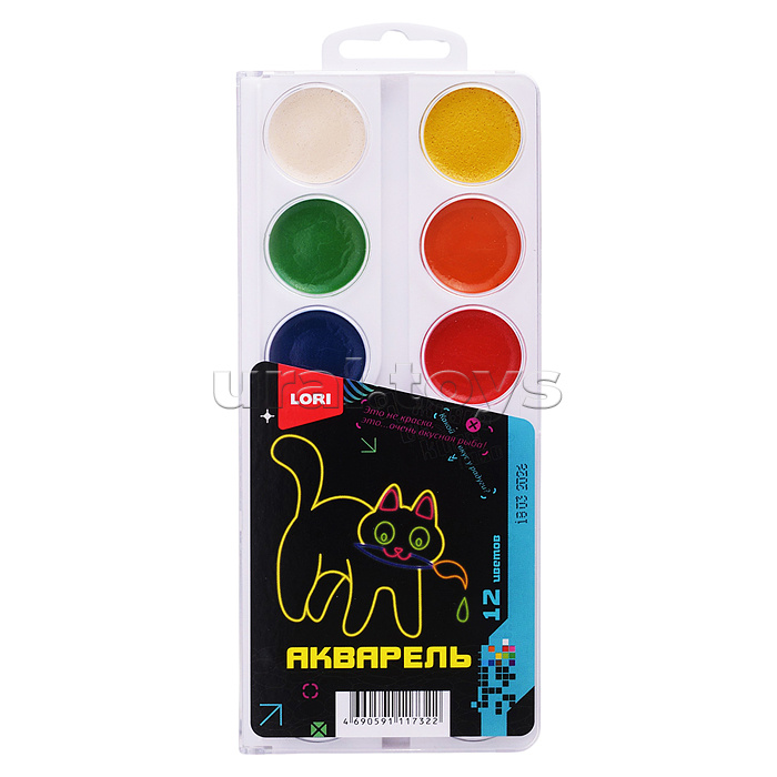 Акварель "Киберкотики" 12 цв, б/к в пластиковой упаковке с крышкой