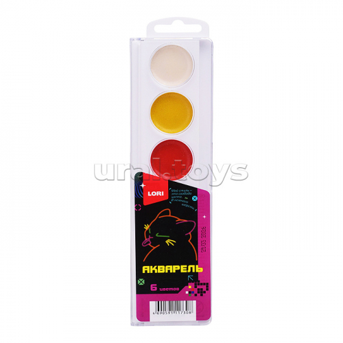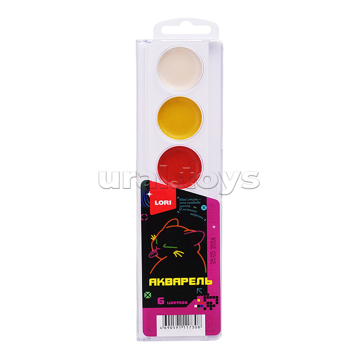 Акварель "Киберкотики" 6 цв, б/к в пластиковой упаковке с крышкой