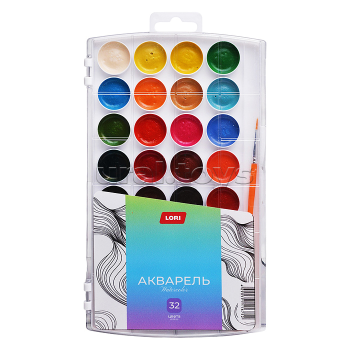 Акварель "Классика" в пластиковом пенале 32 цвета, с/к
