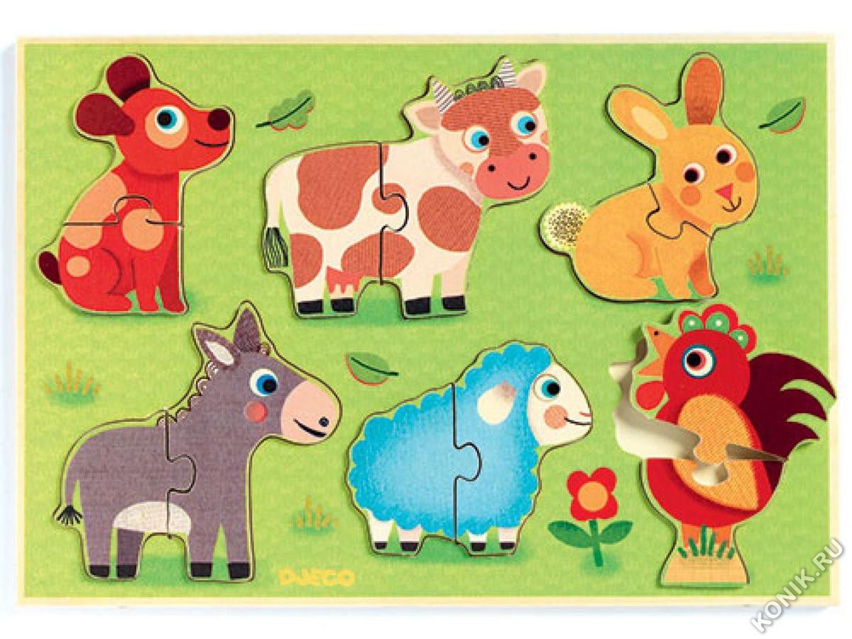 Деревянная рамка-вкладыш «Животные на лугу» от французского производителя Djeco познакомит вашего ребёнка с домашними животными, которые пасутся на лугу: коровой, овечкой, осликом, кроликом, петушком и собакой. _x000D_ _x000D_ Ребёнку нужно вставить животное в соответствующую по форме выемку. Кроме того, эта игра является первым пазлом, деревянные фигурки животных состоят из двух частей. Ваш малыш будет с удовольствием составлять части картинок и смотреть, какое животное у него получается._x000D_ _x000D_ Игра с рамками-вкладышами способствует развитию сенсорного восприятия и пространственной координации, непосредственно развивает мелкую моторику рук. Деревянные рамки-вкладыши обучают основам классификации и логике, пространственной ориентации, учат различать предметы по силуэтам. Деревянные игрушки экологически безопасны, приятны для детских ручек, способствуют развитию тактильных ощущений._x000D_ _x000D_ Французская компания Джеко производит развивающие игрушки и игры для детей, а также наборы для творчества и детали интерьера детской комнаты. Все товары Джеко отличаются высочайшим качеством, необычной идеей исполнения. Изображения и дизайн специально разрабатываются молодыми французскими художниками._x000D_ _x000D_ Ищите необычный и полезный подарок для малыша? Посмотрите на рамку-вкладыш Джеко «От 1 до 10».