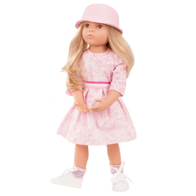 Очаровательная кукла Gotz Эмма растопит сердечко любой девочки! Эмма одета в лёгкое платье нежно-розового цвета с цветочным принтом. Оно подпоясано полосатым ремешком, который слегка подчеркивает талию Эммы. На ногах куколки красуются универсальные белые кеды на шнуровке, из-под обуви выглядывают модные носочки с люрексом. И завершает образ стильная летняя шляпка. Надо скорее собирать подружек и отправляться на прогулку, чтобы покрасоваться в таком милейшем наряде перед всеми.