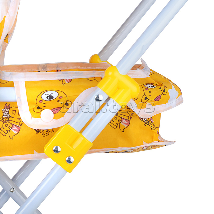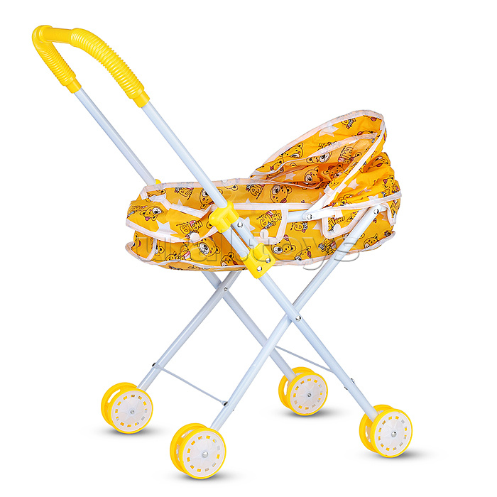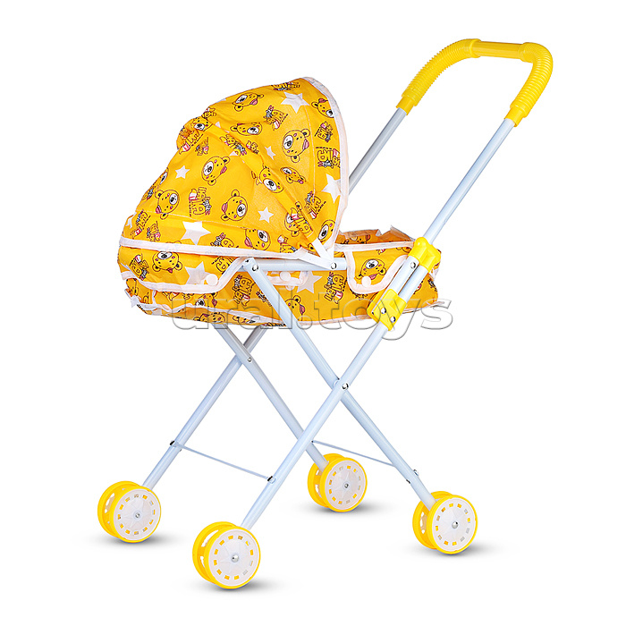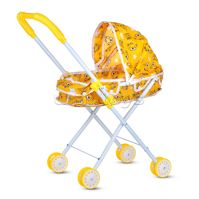 Коляска для кукол (металлическая, складная, прогулочная с капюшоном, цвет желтый) в пакете