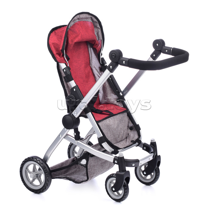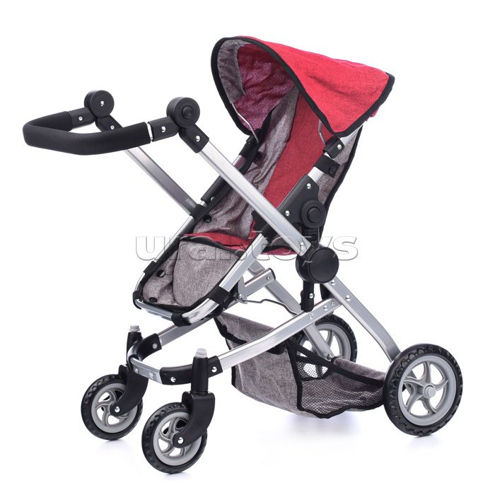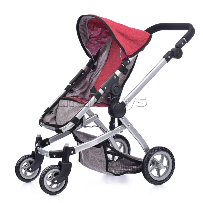 Коляска для кукол прогулочная, металлическая, цвет бордово-серый
