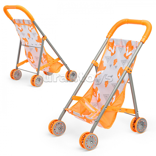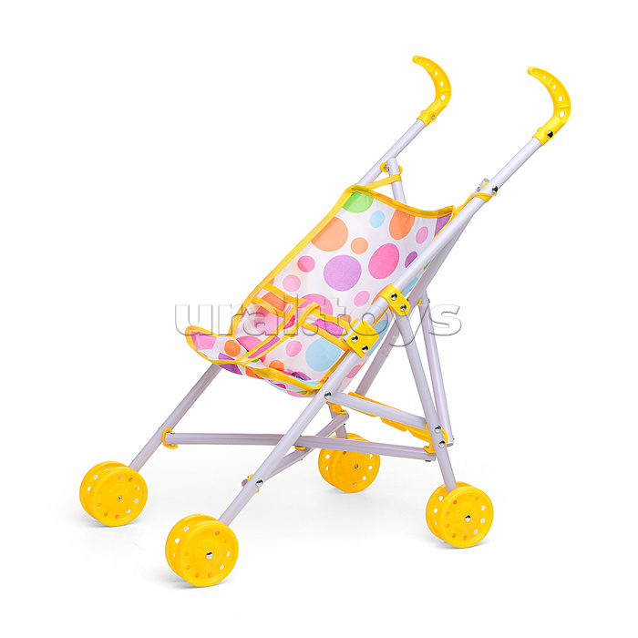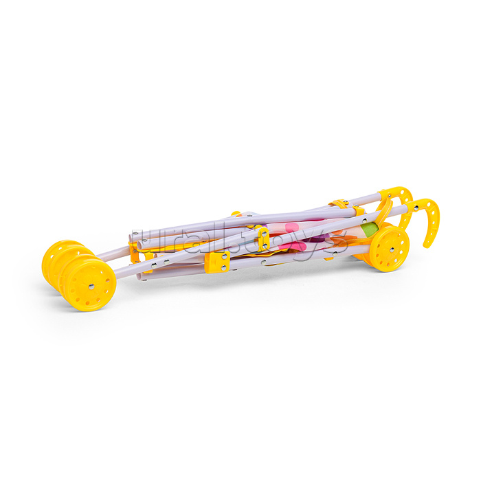 Коляска кукольная (трость, складная, цвет жёлтый, с принтом) в пакете