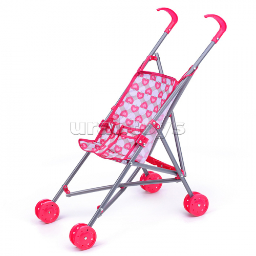 Коляска-трость для кукол, прогулочная, цвет серо-розовый