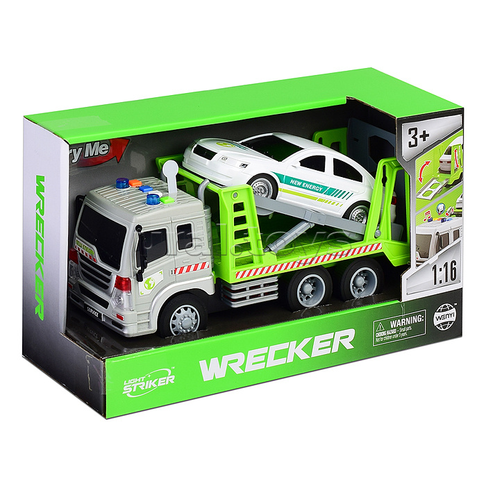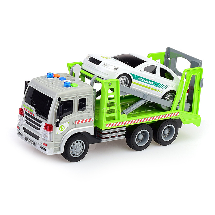 Автовоз "Трейлер" 1:16 (свет, звук) в коробке (зеленый)