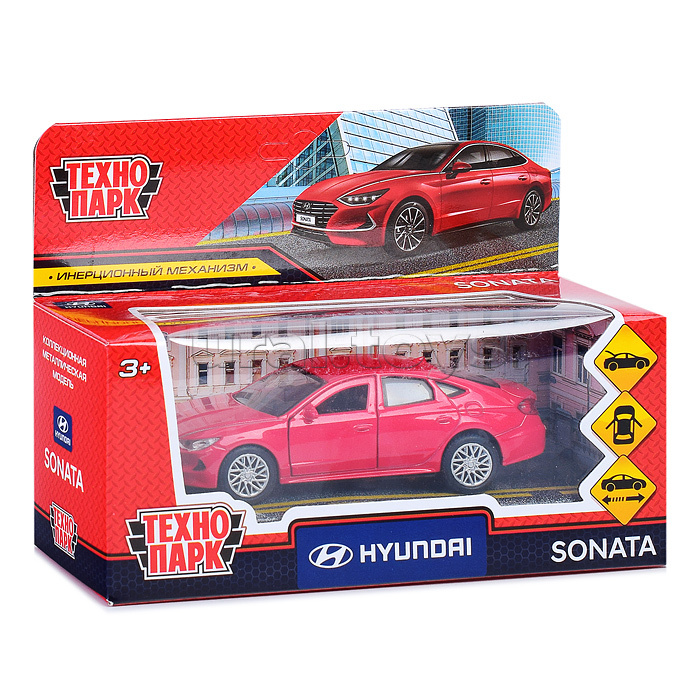Машина металл Hyundai Sonata 12 см. (двери, багаж, красный) инерц., в коробке