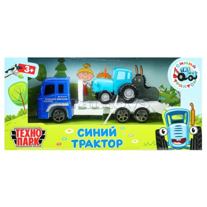 Машина металл Синий трактор с автоперевозчиком 7,5 см, синий