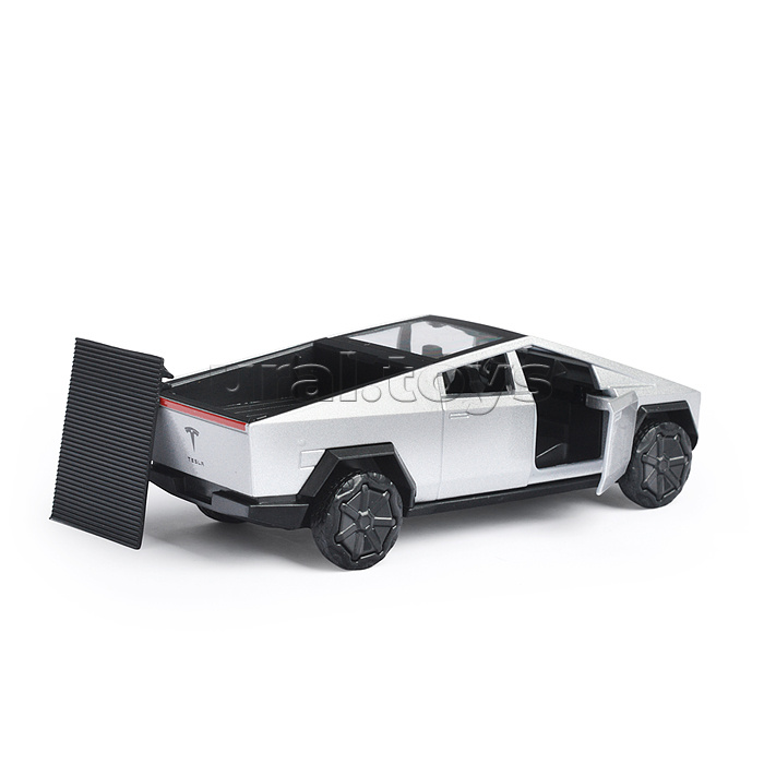 Машина металл Tesla Cybertruck 13,7см, (откр. дв, серебристый) инерц., в коробке