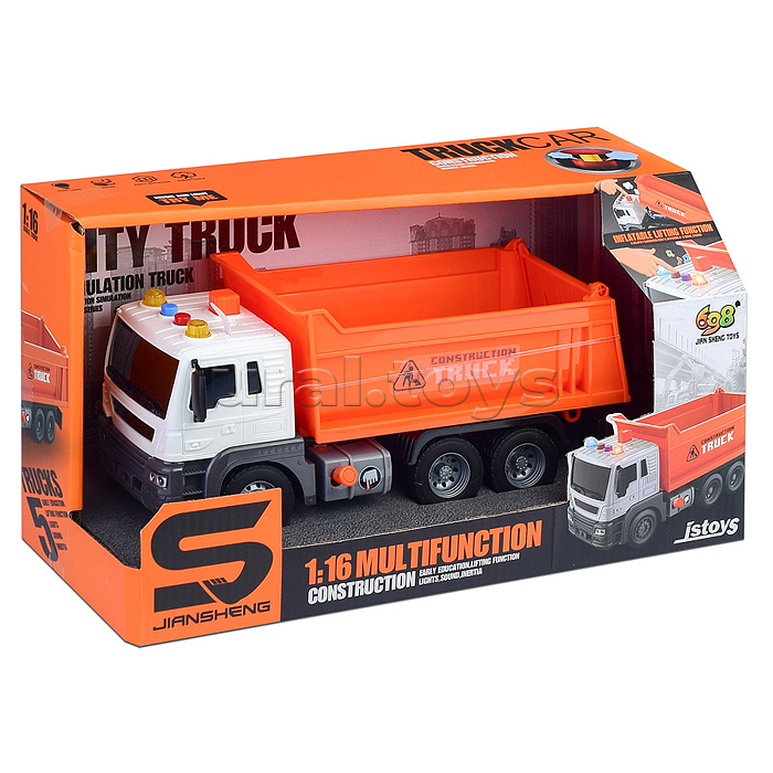 Машина "Самосвал" 1:16 (свет, звук) в коробке (цвет оранжевый)