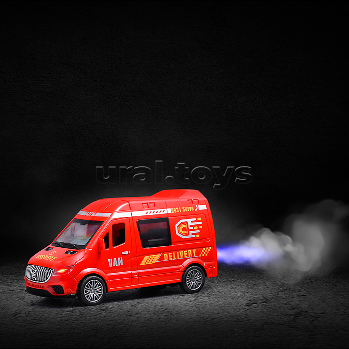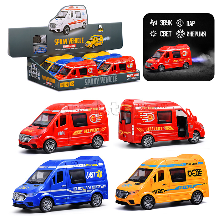 Машина со светом, музыкой и распылителем, в коробке