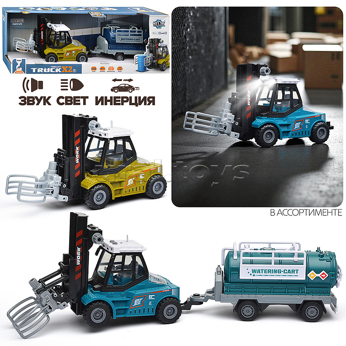 Машина "Вилочный погрузчик" с автоцистерной (свет, звук) в коробке