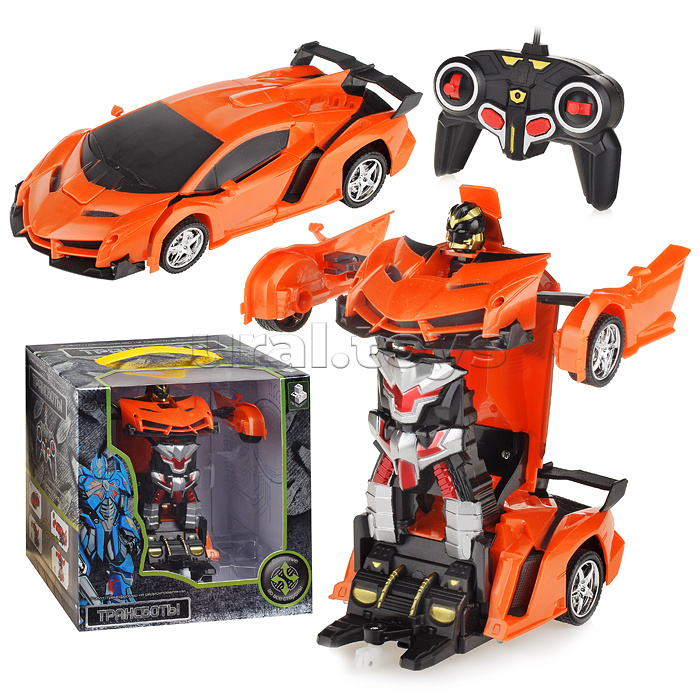 Трансботы, 1:18 на р/у 27МГц, трансформирующийся в легковую машину 20 см, оранж.