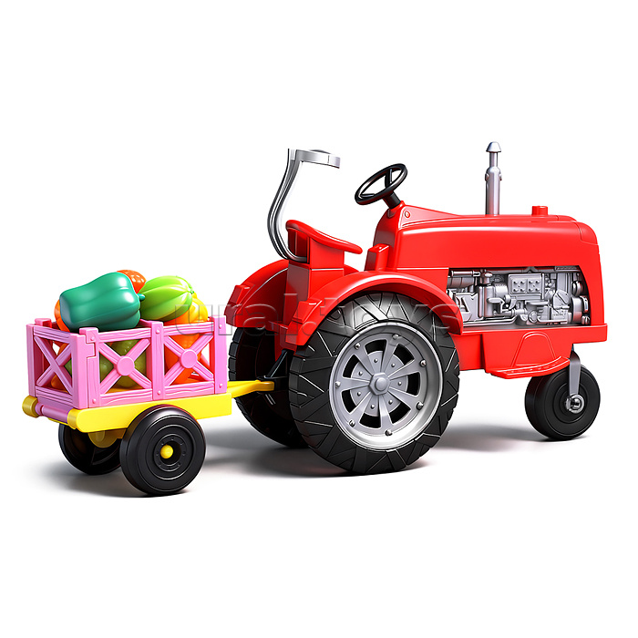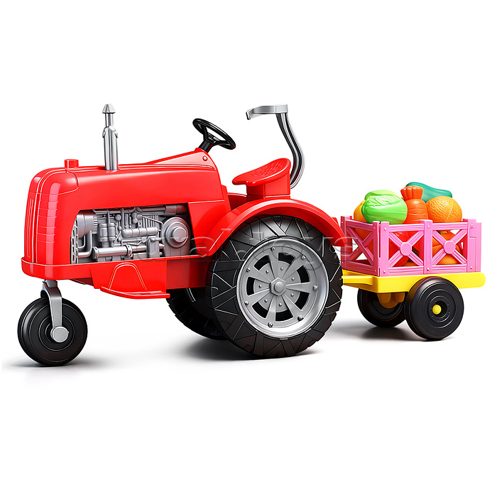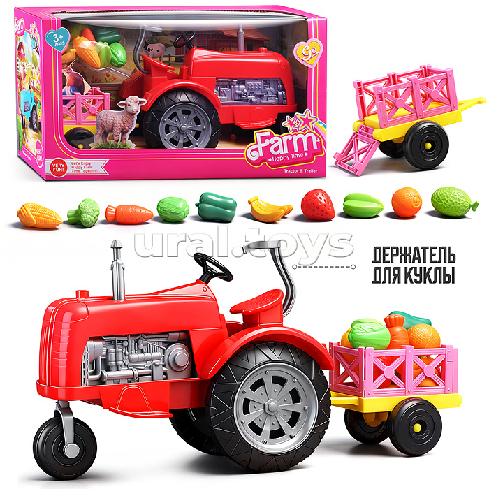 Трактор "Ферма" с фруктами и овощами, в коробке