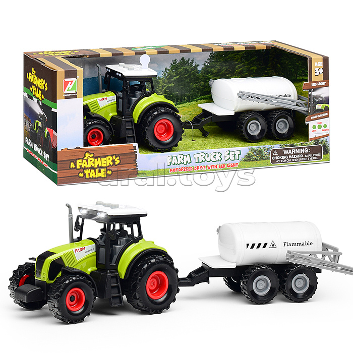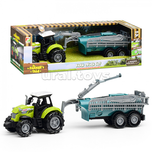 Трактор "Фермер" с прицепом, цвет зелёный, в коробке