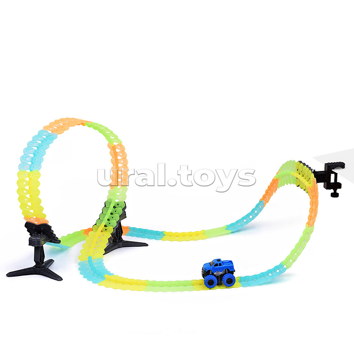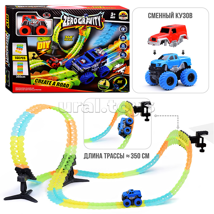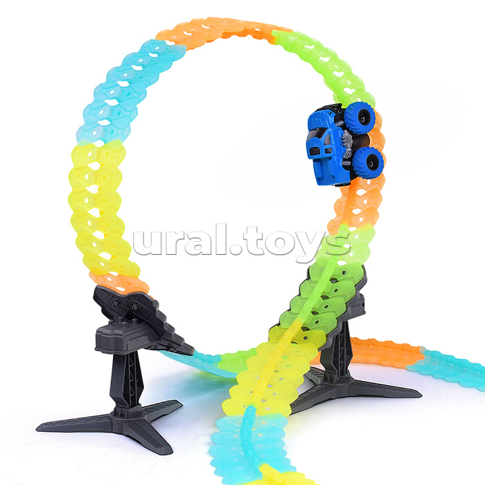 Наличие: >10Количество деталей: 144.Протяжённость пути: 350 см.Ширина дороги: 5.5 см.В комплекте машинка с электрическим мотором.Машина работает от аккумулятора "3.7V 500mAh" (входит в комплект).Размеры машины: 10х8.5х7.5 см.Материал: пластик.Соответствует требованиям безопасности продукции.Для детей от 3-х лет.