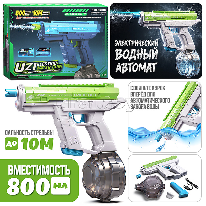 Водное оружие "Гидравлический пистолет" в коробке (цвет зеленый)