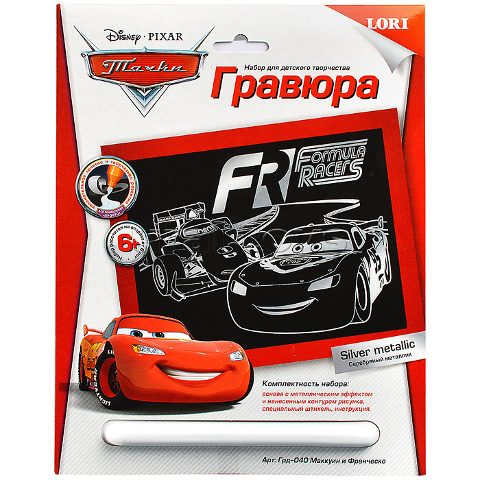Гравюра Disney Тачки большая с эффектом серебро "Маккуин и Франческо"