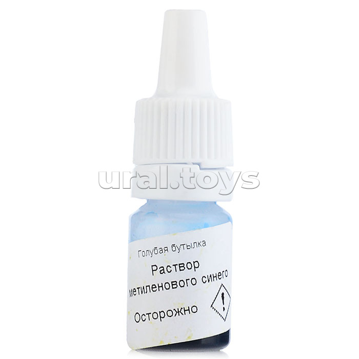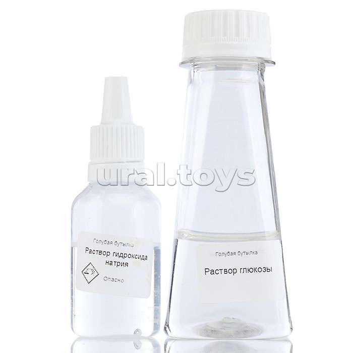 • Набор даёт возможность наблюдать, как голубой раствор в колбе неожиданно теряет цвет. Но стоит встряхнуть сосуд и раствор снова становится голубым.