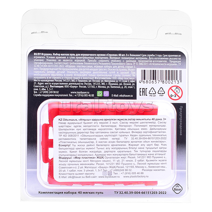 Игрушка. Набор мягких пуль для оружия "Стрелок" 40 шт (по 60 шт./кор.)