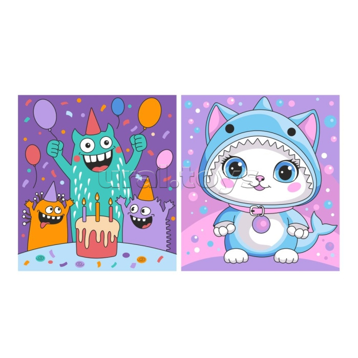 Картина по номерам детская "Монстрики" (картон 15х13,5) 2 шт