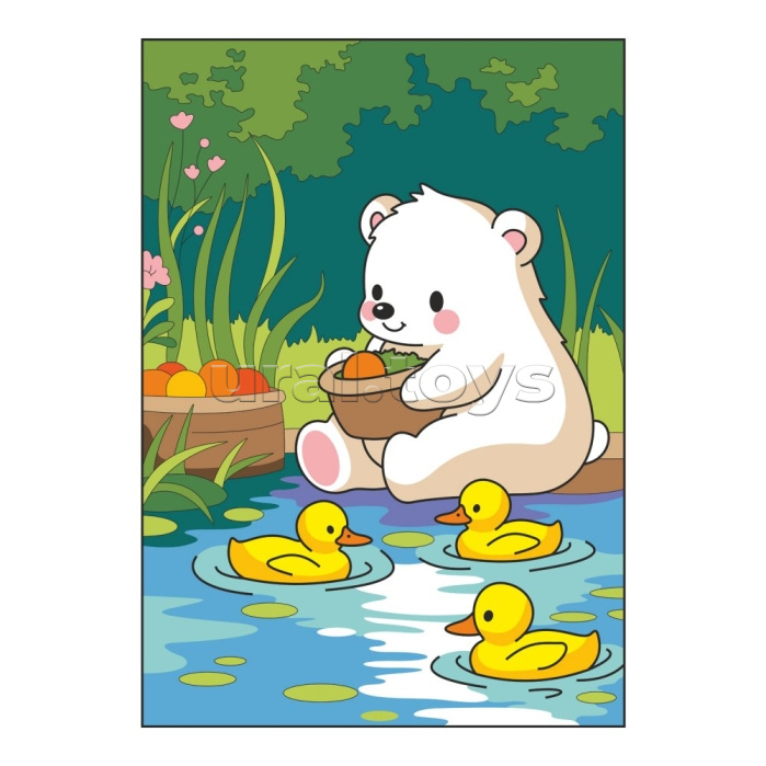 Картина по номерам для малышей на картоне 20х30 "Мишка с уточками"