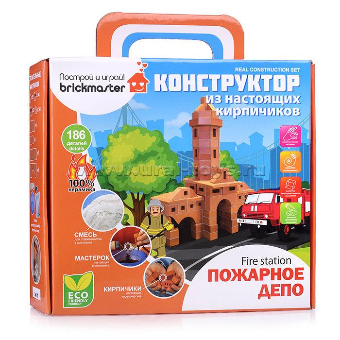 «Брикмастер» - это серия развивающих конструкторов из настоящих маленьких кирпичиков российского производства. Все элементы конструктора производятся только из натуральных экологически чистых материалов: керамичесике детали, строительная смесь из песка и крахмала и деревянный мастерок. Это возможность собрать различные постройки с помощью уменьшенных керамических кирпичиков, строительной смеси, мастерка и подробной инструкции! Готовую конструкцию всегда можно разобрать и собрать снова: достаточно положить ее на некоторое время в воду. А дополнительный набор смеси всегда есть в продаже. Необязательно собирать то, что показано на рисунке. Всегда можно проявить фантазию, чего у талантливых зодчих не занимать!