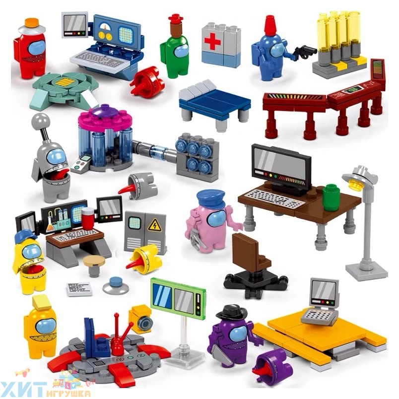 Конструктор AMONG US АМОНГ АС Набор 374 дет. (Фигурок 4 шт. + 4 шт. Импостера, аксессуары) 82281, 82281