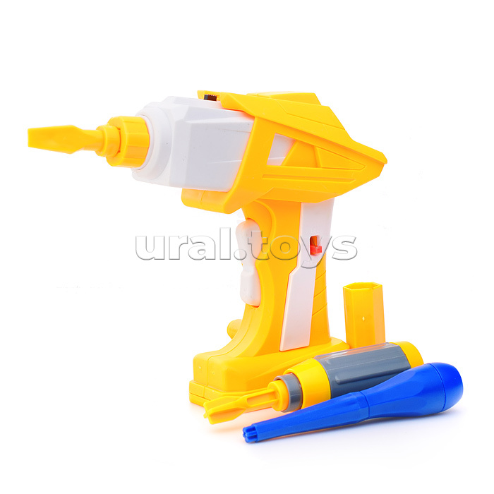 DIY конструктор-машина из крупных элементов и шуруповерт для закручивания и раскручивания соединительных болтов.