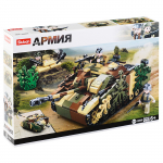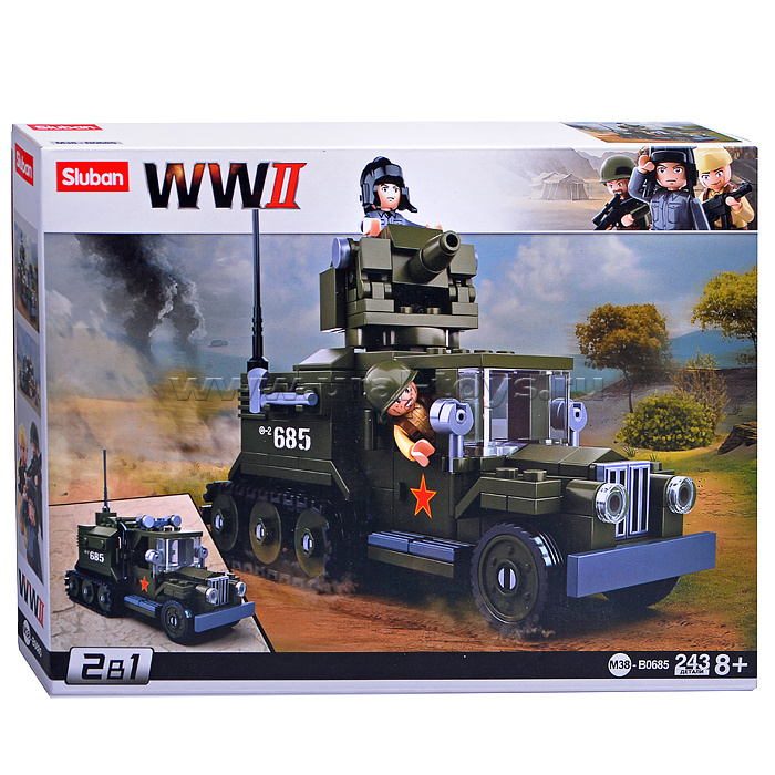 Min заказ: 1шт. • В наборе 243 детали конструктора, из которых можно собрать военный автомобиль, башню с пушкой, фигурки человечков.