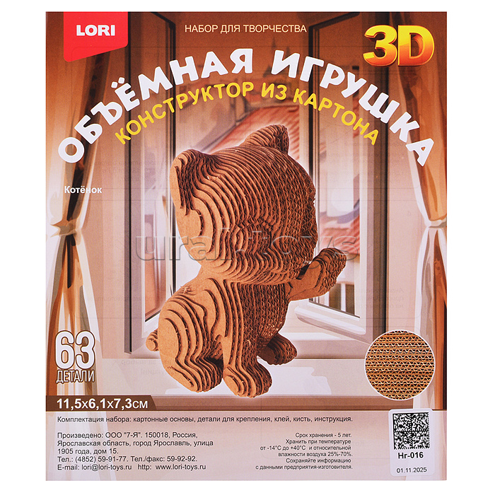 Конструктор из картона. Объёмная игрушка "Котёнок"