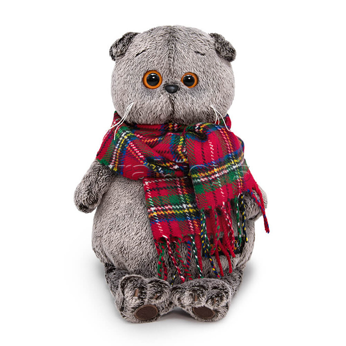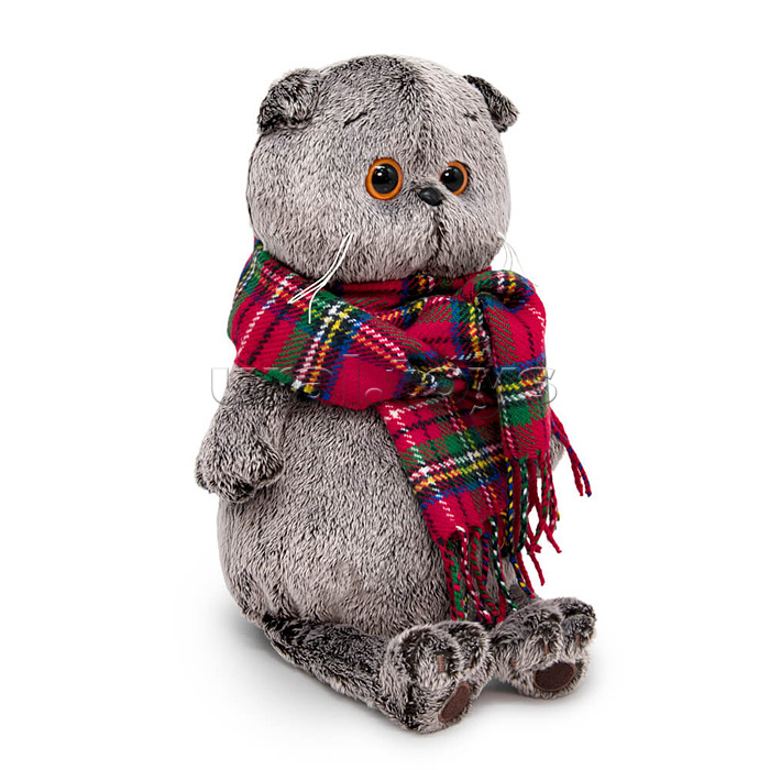 Кот Басик и красный шарф в клеточку