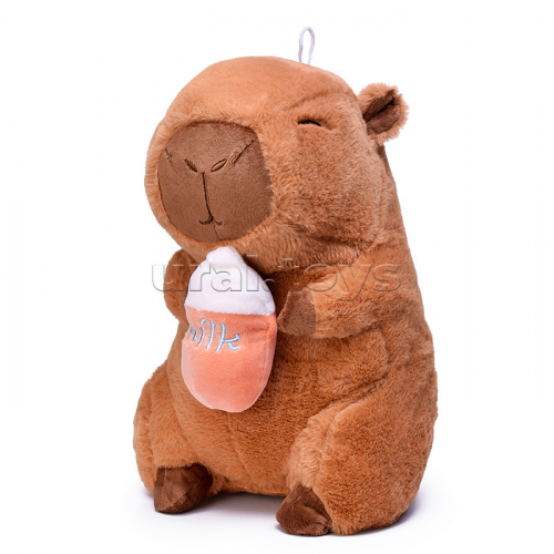 Мягкая игрушка "Капибара" с бутылочкой, 30 см.