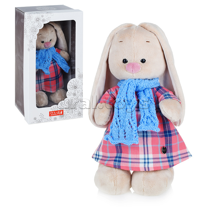 Min заказ: 1шт. Зайка в модном платье в крупную клетку. Подол платья украшен серебристой подвеской с логотипом бренда.
