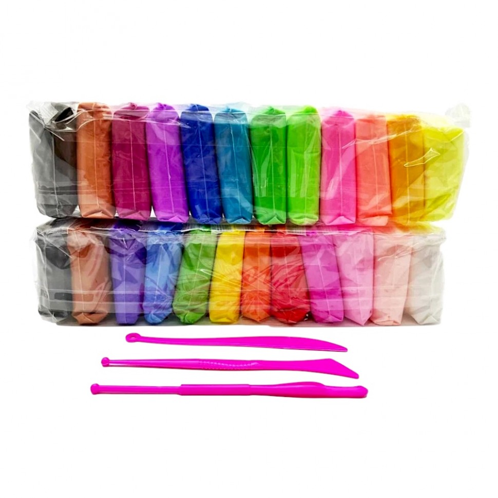 Пластилин не пачкается и для него не нужны какие-либо специальные доски. Эту массу можно разминать, разрывать и лепить. Пластилин имеет легкий вес. Его приятно держать в руках. 24 штуки (цветов) будут в распоряжении Вашего малыша. Масса для лепки застывает на протяжении 3-4 часов. Хранится долгое время. После этого ребенок беспрепятственно сможет играть со слепленными фигурами. Игрушки не будут разваливаться в процессе игр с ними.