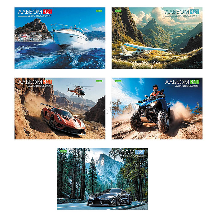 Альбом для рисования 12л А4ф "Попутный ветер" на скобе обложка офсет бумага 5 дизайнов в блоке