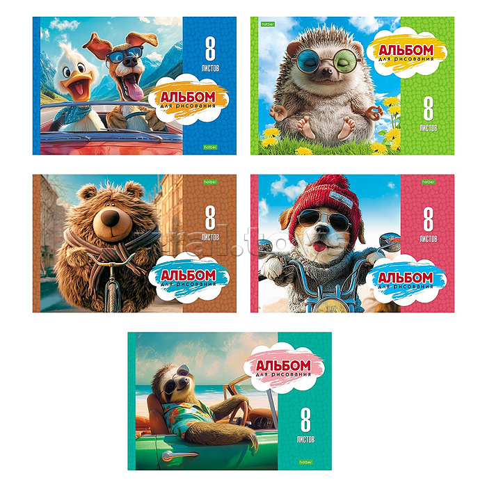 Альбом для рисования 8л А4ф "Веселый движ" на скобе обложка офсет бумага 5 дизайнов в блоке