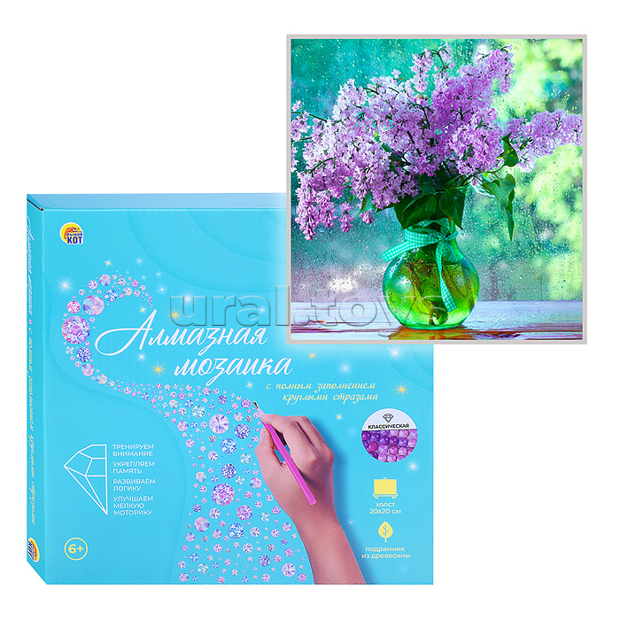 Алмазная мозаика 20х20 "Свежая сирень" с подр., с полн. заполн.(класс.) (24цв)
