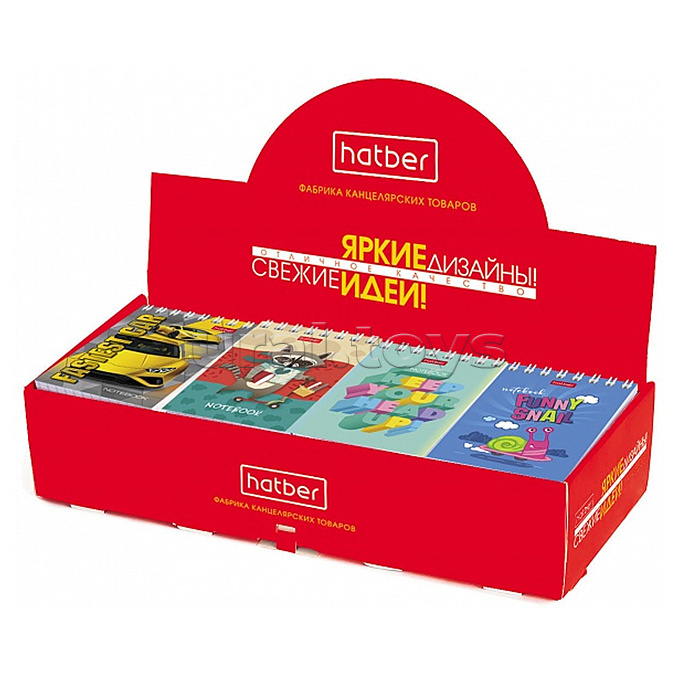 Блокнот А7 40л клетка "Ассорти" на гребне
